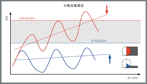 為銑削加工計算的補償因子指出了多種途徑來(lái)改變與刀具嚙合量有關(guān)的切削參數,從而保持所需的加工溫度。如果溫度過(guò)低,則無(wú)法使刀具材料達到最大的韌性,同時(shí)還可能會(huì )形成積屑瘤(積屑瘤是導致切削刃斷裂或微崩的情況)。如果溫度過(guò)高,則會(huì )加快切削刃磨損或刀具變形。通過(guò)參數調整進(jìn)行補償可以平衡熱負荷與機械負荷,優(yōu)化刀具壽命和生產(chǎn)率。