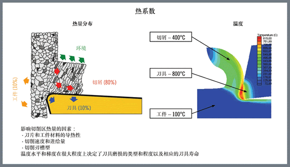 特別是硬質(zhì)合金刀具,它由堅硬但易碎的粉末金屬制成。如果溫度高于特定最低水平,則會(huì )提高粉末金屬材料的韌性并減少斷裂情況。與之相對,當切削溫度過(guò)低時(shí),刀具會(huì )易碎并導致斷裂、微崩或刃口積屑。因此,目標是維持合理的切削溫度范圍。